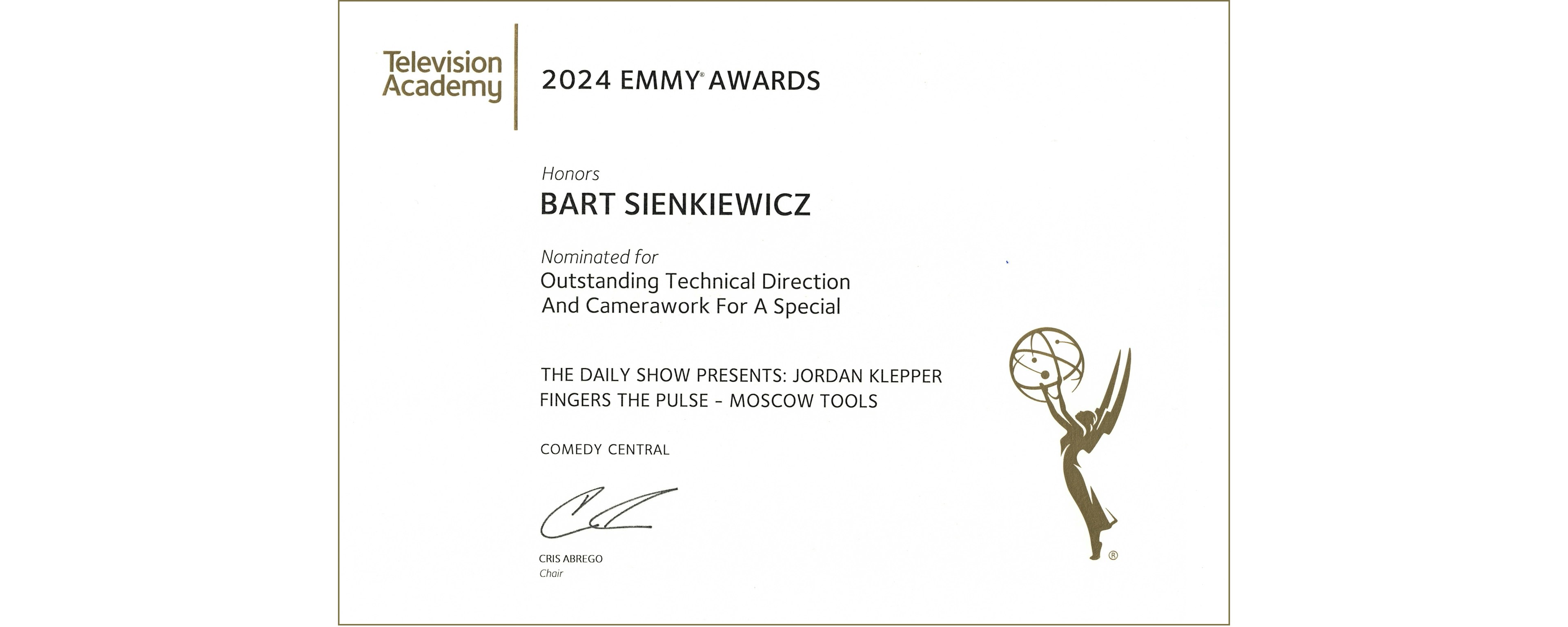 • Emmy Awards Nominee Outstanding Technical Direction and Camerawork For A Special 2024 for Jordan Klepper Fingers The Pulse: Moscow Tools